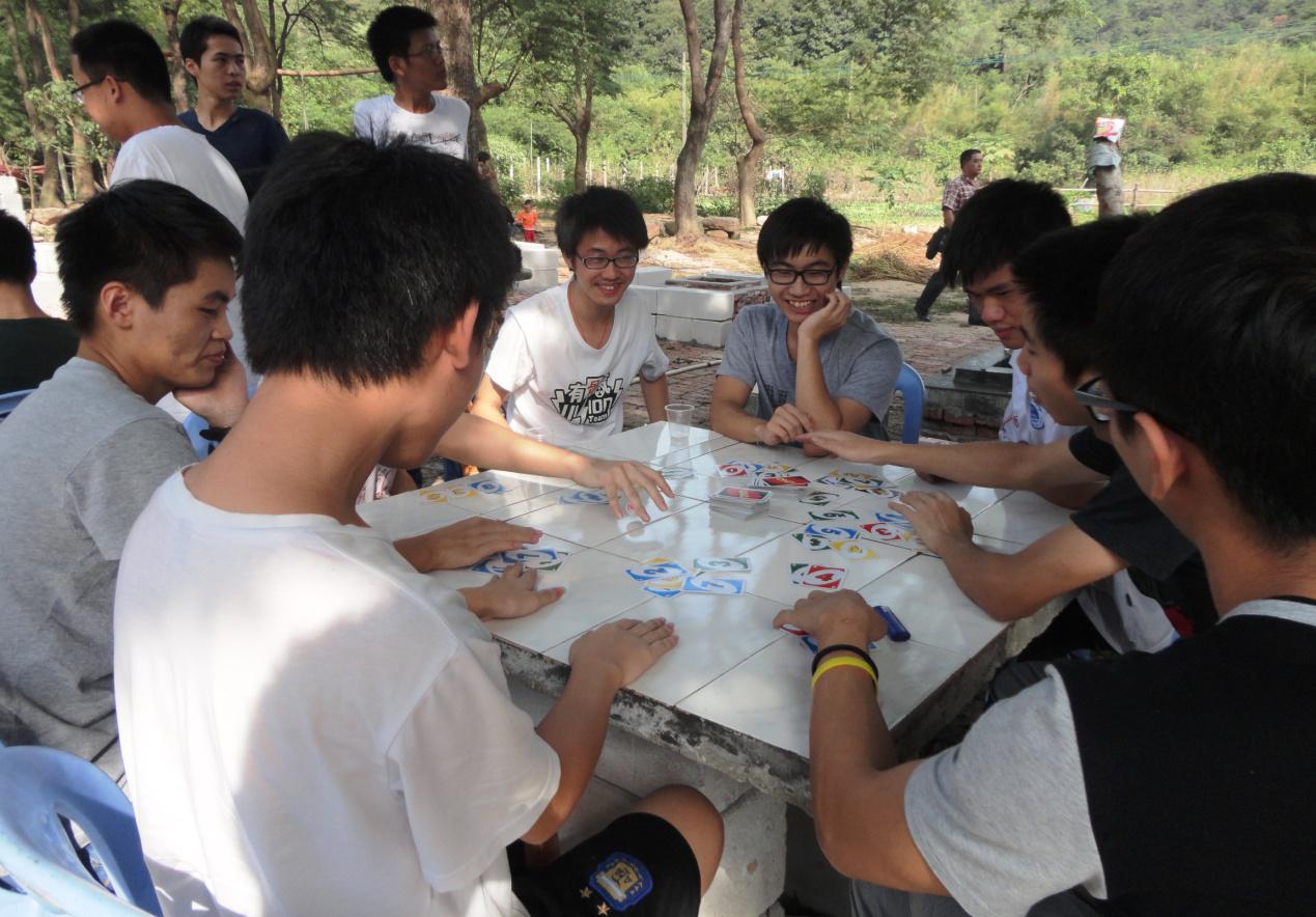 烧烤过后,正值正午,烈日当空,于是我们便灵活变更了活动计划,将自由活动时间提前。同学们在烤炉附近的树荫下开始了各式各样的棋牌竞技活动,大家斗智斗勇,玩的不亦乐乎。当然,在游戏中失败是必须接受惩罚的,于是乎各种惩罚方式层出不穷,游戏失败者也心甘情愿接受惩罚。
