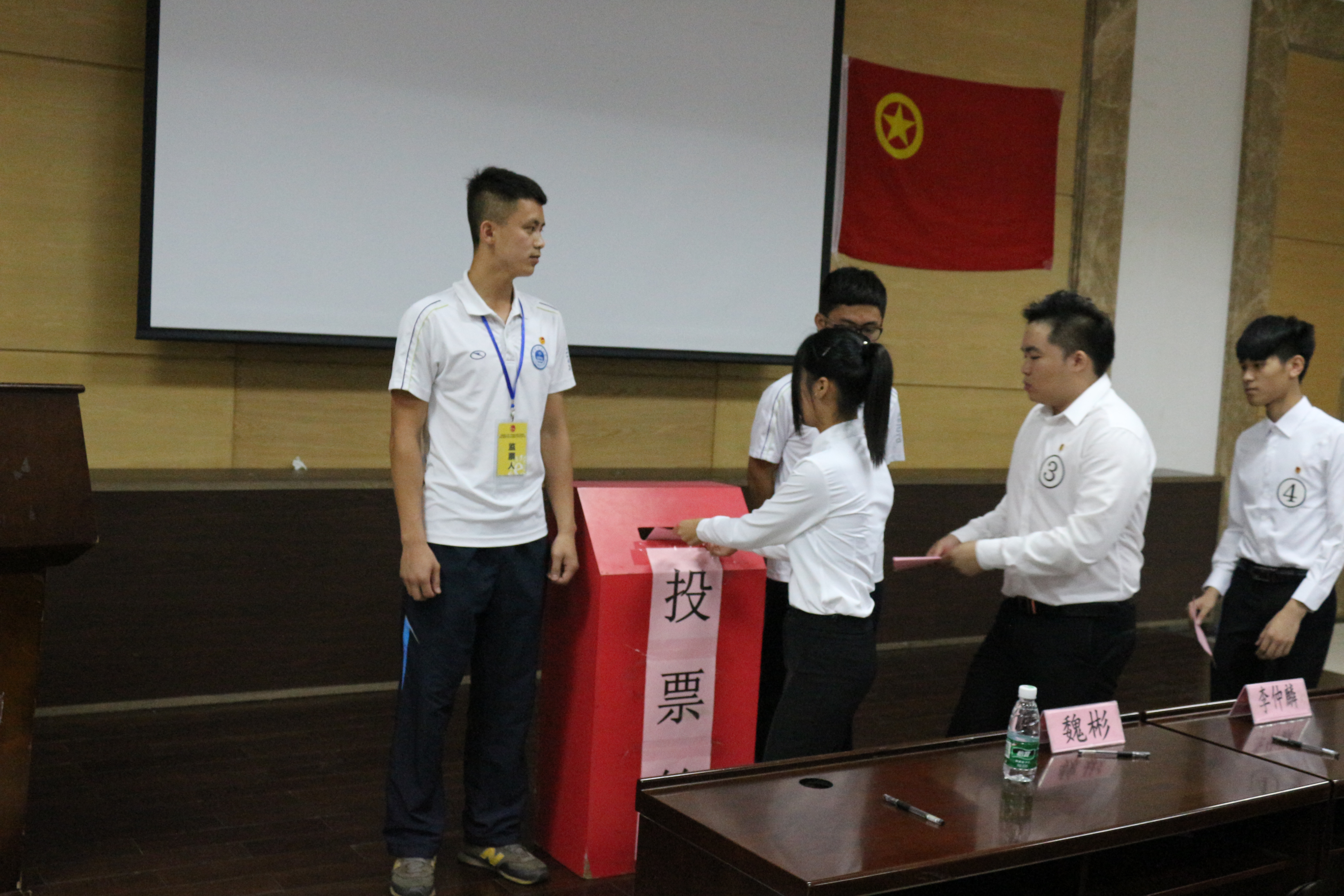 其次,进入新一届团委学生会常委选举环节,由团委、学生会候选人轮流上台宣读竞选宣言,并进行现场投票,保证了大会选举的公平、公正、公开。在监票员计票过程中,我院学生办公室主任罗自力老师上台发言。罗自力老师对所有团学成员的辛勤付出表示了感谢,同时也表示希望新一届团委学生会干部能继续努力,再创辉煌,更希望广大同学为团学建设多提出自己的宝贵意见,让团学能更好的为同学们服务。