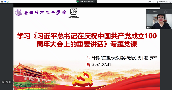 本网讯(记者 邓梦龄)为了全面贯彻落实学校党委《关于印发深入学习宣传贯彻习近平总书记“七一”重要讲话精神工作方案和计划安排的通知》文件精神,7月31日下午,我院党总支书记罗军通过线上的形式,围绕学习习近平总书记“七一”重要讲话精神为全院师生党员上党史专题党课,共计80余人参与了本次的党课学习。