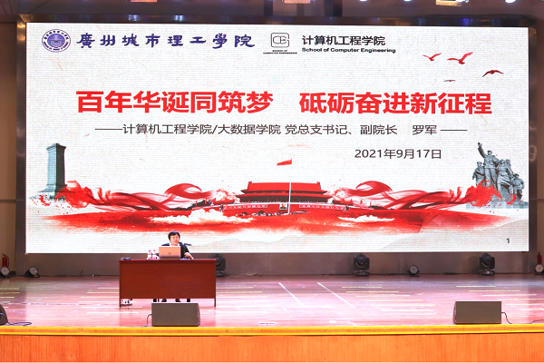 罗军以《百年华诞同筑梦,砥砺奋进新征程》为主题,通过回顾中国共产党的百年光辉历程,深刻阐述并带领同学们解读学习习近平总书记在“七一”庆祝大会上的重要讲话精神,强调初心和使命是激励中国共产党人不断前进的根本动力,在百年风雨历程中,正是因为坚守初心、勇担使命,中国共产党人总能坚定“长风破浪会有时”的信心,在“踏平坎坷成大道”的征途上勇往直前。随后,她着眼于计算机行业的发展背景和发展历程,指出当前信息技术已经融入经济社会生活的方方面面,催生出许多新产业新业态新模式,这对数字化人才培养提出诸多新要求。计算机专业的前景是非常广阔的,而且随着互联网整合资源的能力越来越强,未来大量的创新都离不开计算机专业人才,在这样的大背景下,她对2021级新生提出了三点希望与要求:一是志存高远,做有家国情怀的计算机人;二是积极融入,做有强大丰盈内心的计算机人;三是终身学习,做有广泛兴趣爱好的计算机人。以终为始,把实现中华民族伟大复兴报国之志、继承和弘扬中华民族优良传统的巨大热情,转化为学习现代文化科学知识、掌握过硬本领的强大动力,努力成为全面发展的社会主义建设者和接班人。