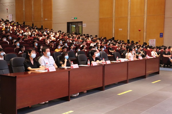 本网讯(记者 邓梦龄)9月17日下午,我院以新生入学教育为契机,面向2021级全体新生共866人在学生活动中心开展“书记、院长思政第一课”。此次课程分别由学院书记罗军、院长邓春晖授课,学生工作办公室主任、2021级全体辅导员及全体新生参加学习。