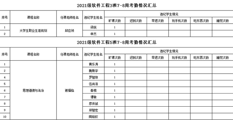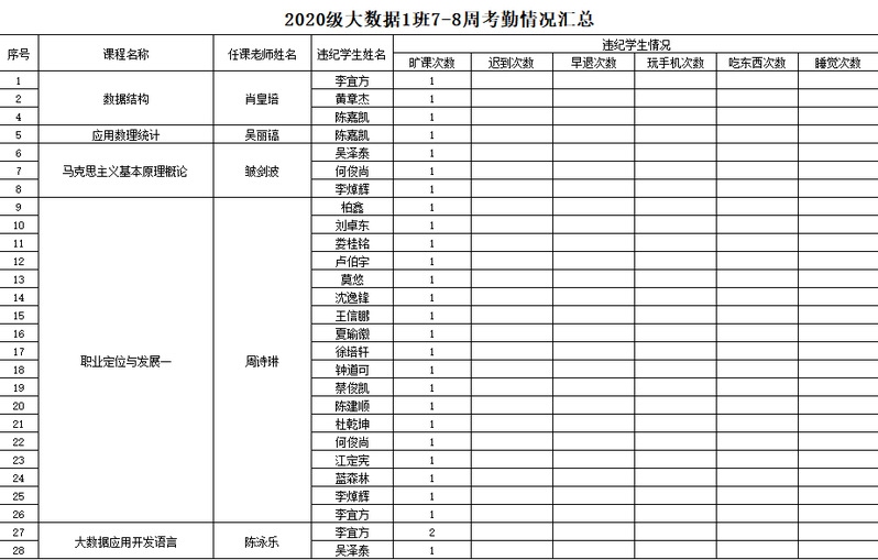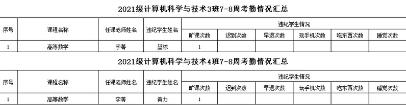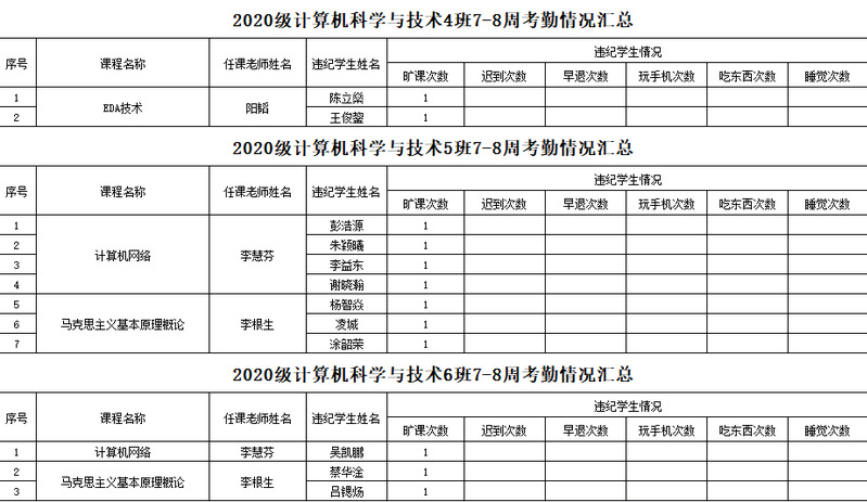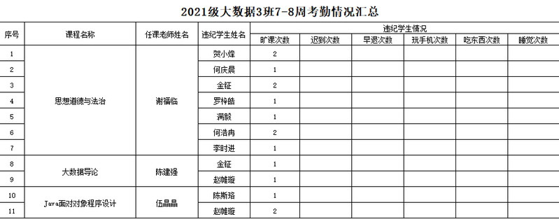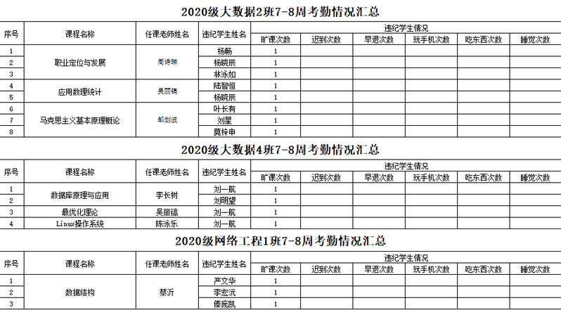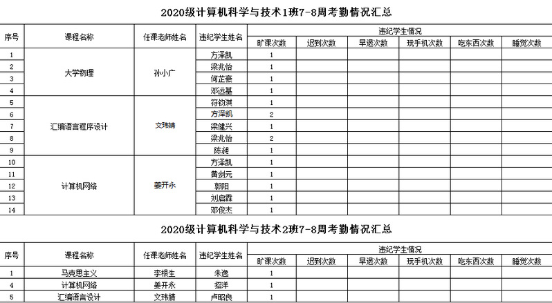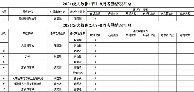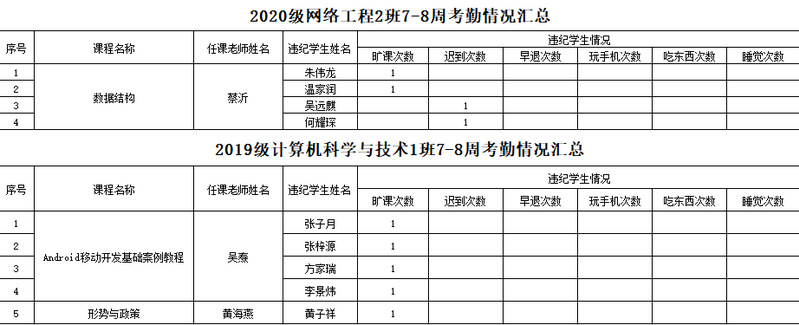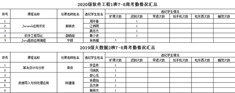 计算机工程学院&大数据学院第 7-8 周考勤情况通报