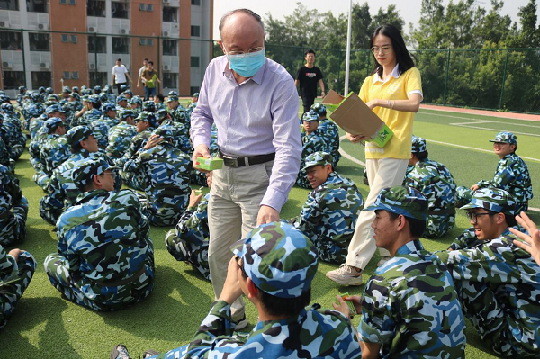 紧接着,学院领导和老师们将消暑饮品送到同学们手中,同时与他们亲切交流,传递着学院对军训学子深深的关爱与温情。