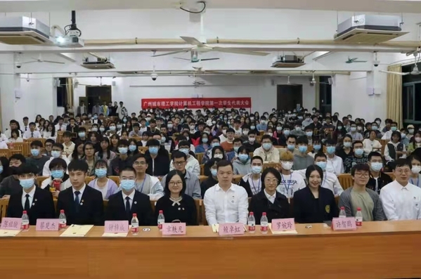 本网讯(记者陈佩)11月12日晚,广州城市理工学院计算机工程学院第一次学生代表大会于A5-201隆重举行。莅临本次大会的领导和嘉宾有:学院学生工作办公室副主任赖卓虹老师、团委书记章轶凡老师、团委副书记樊一眉老师、学生会指导老师许智鹏、陈雪松老师,2018级辅导员罗婉玲老师、团委学生副书记蔡楚杰、钟梓成,学生会主席黄松彬、陈祖璇。