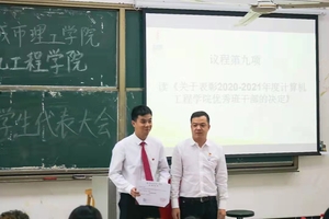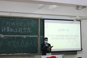 经全体代表投票、监票人监督、计票人统计选票,最终选举产生广州城市理工学院计算机工程学院第一届学生会主席团成员,并由曾巽荣同学在会议上公布。