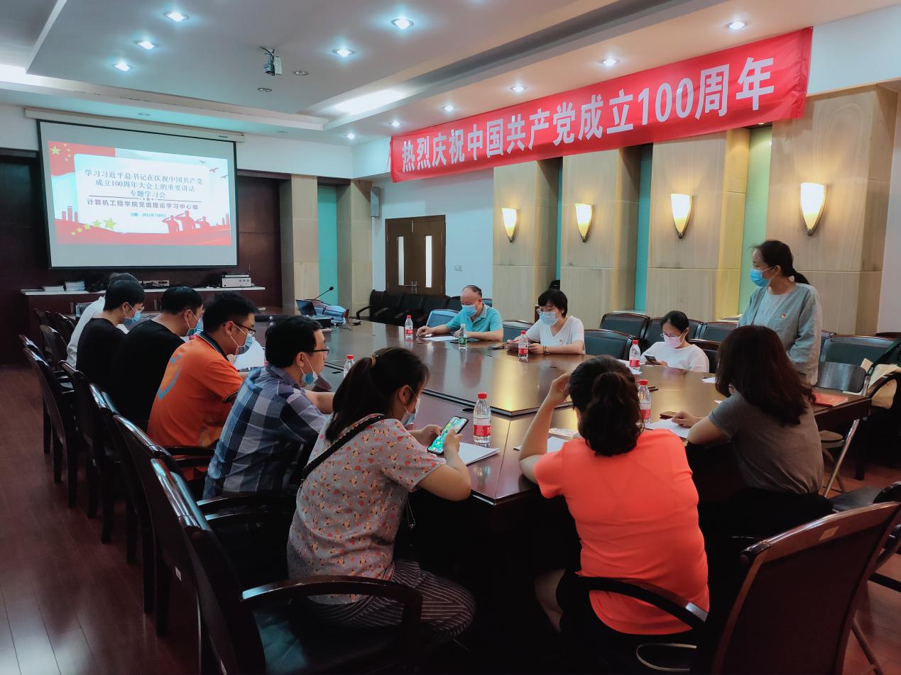 7月5日下午,计算机工程学院党组织理论中心组在B1-301组织学习习近平总书记在庆祝中国共产党成立100周年大会上的重要讲话精神,全体与会人员开展领读领学活动,原原本本、逐字逐句学习习近平总书记在庆祝中国共产党成立100周年大会上的重要讲话。 随后,罗军同志作总结发言。她指出作为高校教育工作者,广大党员要发挥先锋模范作用,基层党支部要发挥战斗堡垒作用,结合职责、结合实际,把学习贯彻习近平总书记重要讲话作为当前和今后一个时期的重大政治任务。