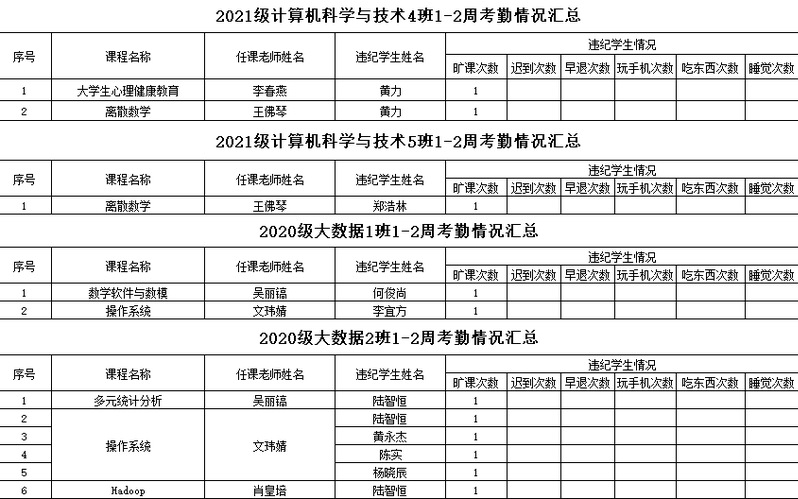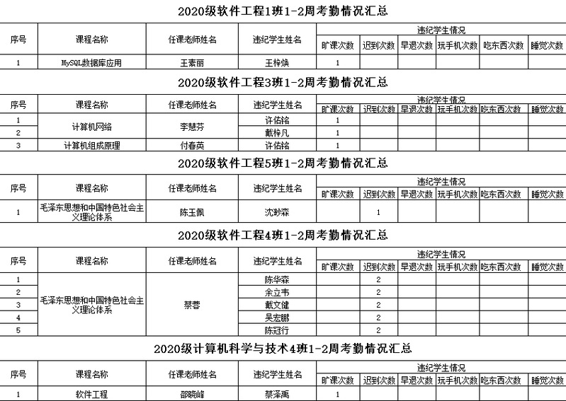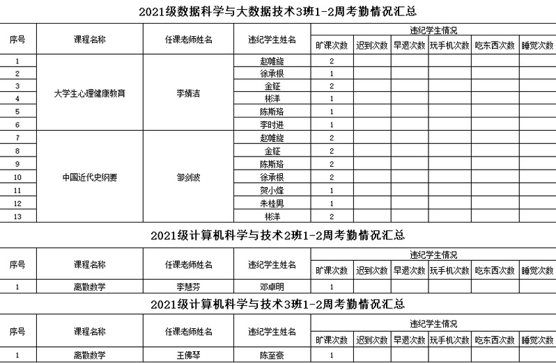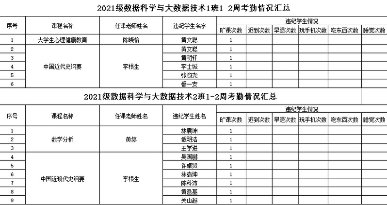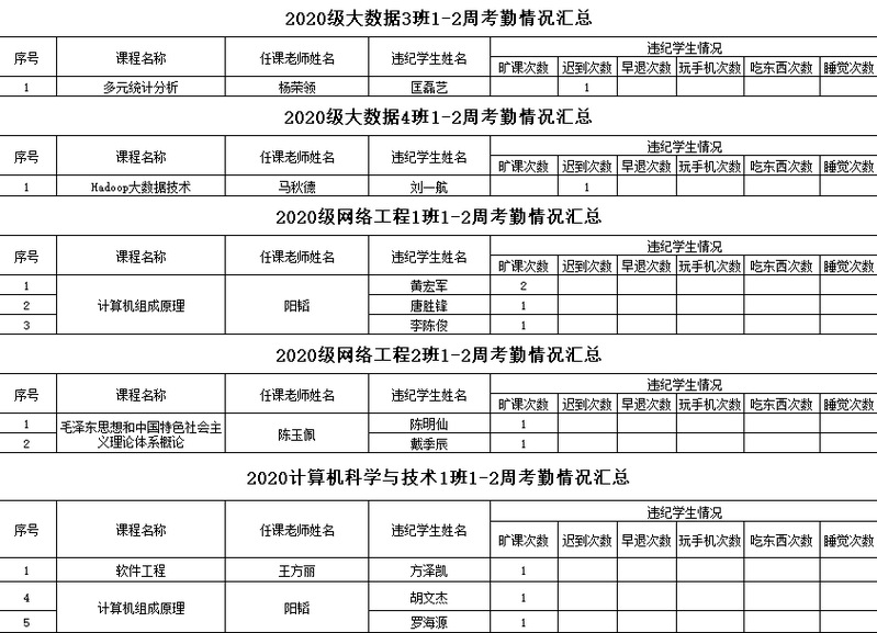计算机工程学院/大数据学院2021-2022学年度第二学期1-2周考勤情况通报