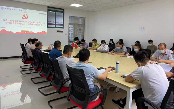 本网讯 (记者 邓梦龄)为深入学习宣传贯彻党的二十大精神,把全院师生的思想统一到党的二十大精神上来,把力量凝聚到党的二十大确定的各项任务上来,扎实做好党的二十大精神宣讲工作,11月15日下午,我院在B5-105召开党总支理论学习中心组(扩大)会议——学习宣传贯彻党的二十大精神专题宣讲会。学院书记罗军、院长邓春晖、副院长蔡沂以及党总支委员、各支部书记、副书记、支部委员、各系、教研室、实验中心主任、副主任参会。会议由罗军主持。
