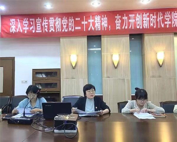 党总支副书记罗婉玲主持开班仪式,罗军作开班动员讲话,她指出今年是全面贯彻党的二十大精神开局之年,学习宣传贯彻党的二十大精神是一项极其重要的政治任务,参训干部以及全体党员要珍惜此次学习机会,深入学习领会党的二十大提出的一系列重要思想、重要观点、重大战略、重大举措,务必要做到全面系统学、融会贯通学、遵规守纪学。随后,她对此次轮训工作安排作介绍,并强调培训班的纪律性,表示要立足学院实际,结合自身工作岗位,坚持从理论学习和专题研讨相结合出发,认真学习、深刻领悟,用党的二十大精神中蕴含的马克思主义立场、观点、方法指引实际教育教学工作,将学习成效转化为推进学院高质量发展的具体实践。