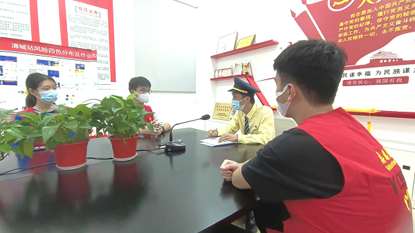 学生第一党支部副书记李浩亮、教师党员许智鹏带领学生党员分别前往广清城际乐同站、狮岭站、银盏站、龙塘镇站和清城站进行维护乘客秩序、引导乘客进出站、协助乘客购票、为乘客提供出行咨询等志愿服务。正式到岗前,广清城际工作人员从岗位要求、服务标准、注意事项等方面对志愿者们进行专业的培训,并亲身示范礼仪手势,为更好地投入服务工作打下牢固基础。