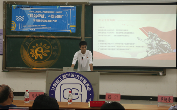 本网讯(记者 刘芷轩 周嘉豪)5月30日下午,我院于A5-201开展2022-2023学年“铸就卓越,e同起航”学风建设总结表彰大会,对43名优秀学生标兵和14名“阅读‘计’续,书香满溢”校园读书月活动获奖学生进行表彰。学院院长邓春晖,副院长蔡沂,学生工作办公室负责人以及全体辅导员参加大会。