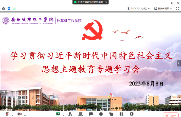 本网讯(记者 邓梦龄)为深入开展学习贯彻习近平新时代中国特色社会主义思想主题教育,根据省委宣传部《“回望中共三大百年——红色南粤薪火相传”系列党史微讲堂工作方案》及《广东省教育厅办公室关于组织收看中共三大党史公开课的通知》文件精神,在中共三大召开 100 周年之际,计算机工程学院党总支于8月8日组织全体师生党员线上集中学习 5 期党史公开课。