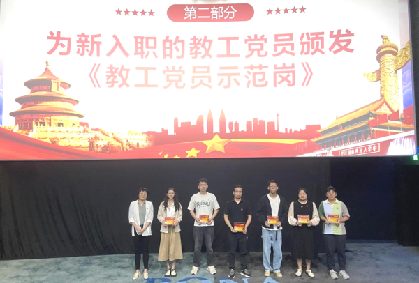 为新进教师党员颁发《教工党员示范岗》(潘田海 摄)