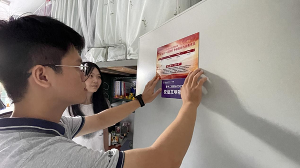 活动最后,学院学生第一、第二党支部书记及党员教师前往学生宿舍,为新发展党员颁发“党员责任岗”。要求学生党员要时刻亮出自己的身份,用实际行动影响和带动身边的同学,从小事做起,从身边做起,努力成为中国特色社会主义事业的合格建设者和可靠接班人。2021级计算机科学与技术专业黄韬臻同学表示:“作为新发展党员,我一定会以党员最高标准严格要求自己,时刻用行动带动、帮助身边同学,充分发挥‘一名党员、一面旗帜’的先锋模范作用。”