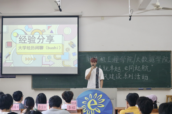 本网讯(记者 章轶凡 梁成豪) 11月28日下午,我院成功举办“铸就卓越,e同起航”学风建设系列活动之优秀学生学习经验分享交流会。本次会议邀请获得2022-2023学年度“国家奖学金”、“国家励志奖学金”、“优秀学生党员标兵”以及获得多项专利成果的4位优秀学生代表进行经验分享。学院团委副书记、学生会指导老师、2021-2023级辅导员及100余名学生代表参加本次活动。