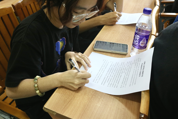 学生干部签署承诺书(张林 摄)