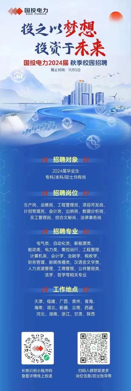招聘信息 | 国投电力2024届秋季校园招聘正式启动!