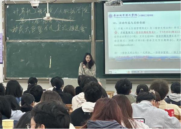 本网讯(记者 黄梓媛)为充分发挥学生宿舍育人阵地的重要作用,营造温馨和谐、包容理解的人际关系和积极向上的宿舍氛围,以舍风促学风、以学风创校风,鼓励学生积极参与第十三届宿舍文化节,我院于3月7日中午在A5-201召开第十三届宿舍文化节动员大会。学院党总支书记张彩霞,全体辅导员、各班班委参加会议。
