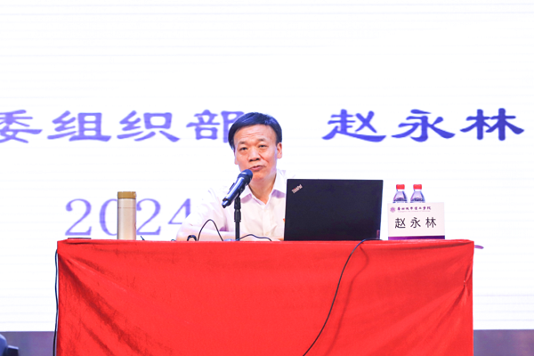 最后,赵永林作开班动员讲话并进行授课。他对参加本次党课培训班的全体学员表示热烈欢迎并提出严格要求,希望全体学员提高思想认识,深刻领会培训意义;自觉遵守培训纪律,真正做到学有所获。接着,他以“积极创造条件,争取早日实现入党愿望——兼谈正确认识和全面了解中国共产党”为主题开展专题讲座。他表示,在多元价值观交织、碰撞的新时代,大学生申请入党是共产主义信仰的正确选择!是政治上要求进步的表现!作为新时代大学生,为了党的事业,为了人民的利益,应该积极要求入党。他指出,全面正确认识中国共产党,可以从党史、党章、党员三个角度进行。学习党史,从党的过去,感悟到中国共产党是伟大、光荣、正确的马克思主义政党;学习党章,从党的宣言中了解到中国共产党是有严密组织、严肃纪律、严格要求的马克思主义政党;从党员个体发挥作用的实际体察到中国共产党是由发挥先锋模范作用的先进分子组成的先锋队组织。他希望,同学们能够主动接受党组织的培养和考察;端正入党态度、坚定对党的信念;加强理论学习,坚持不懈用习近平新时代中国特色社会主义思想武装头脑,提高对党的认识;坚持和实践全心全意为人民服务的宗旨;加强党性修养,提高自身素质,争取早日入党。
