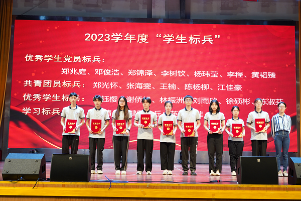 学工办副主任赖卓虹宣读表彰决定,到场嘉宾为读书月获奖班级及个人、院级青马班优秀学员、学生标兵以及各类学术竞赛获奖学生代表颁奖。表彰环节后,优秀学生代表陈孝均上台作分享,他结合自身比赛经历,分享了在竞赛中克服困难、高效备战和团队协作等方面的经验和心得,为在座的同学们指明了方向。