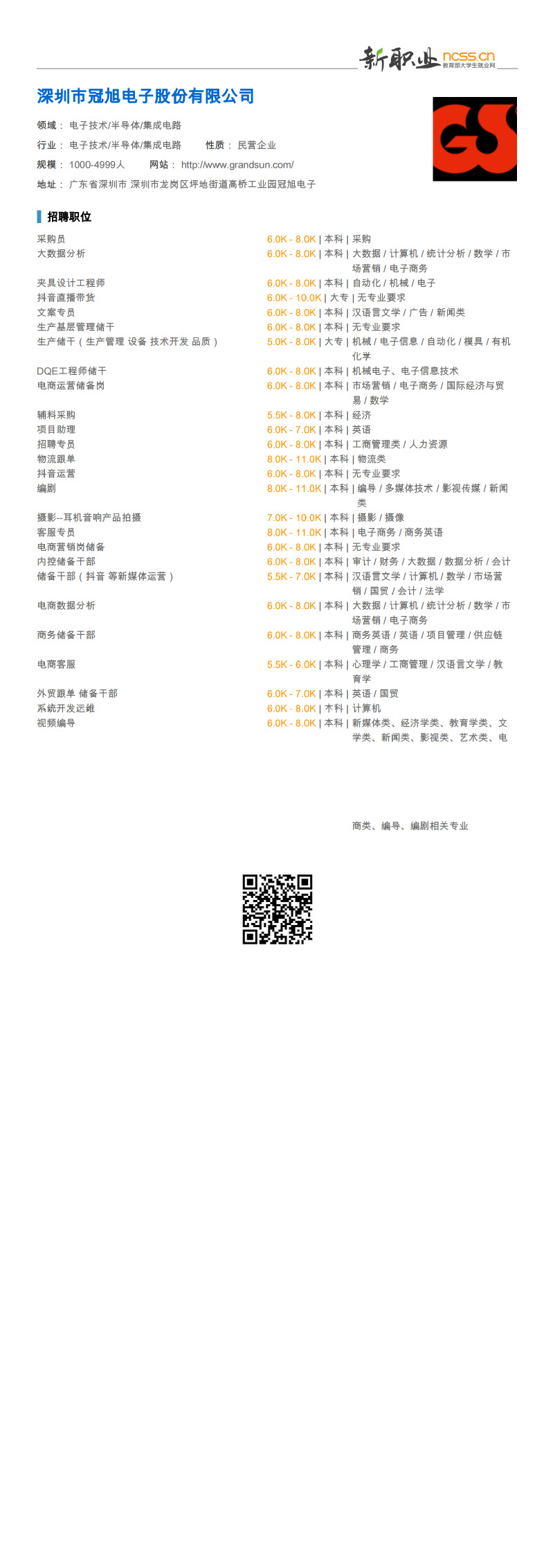 招聘信息 | 深圳市冠旭电子股份有限公司
