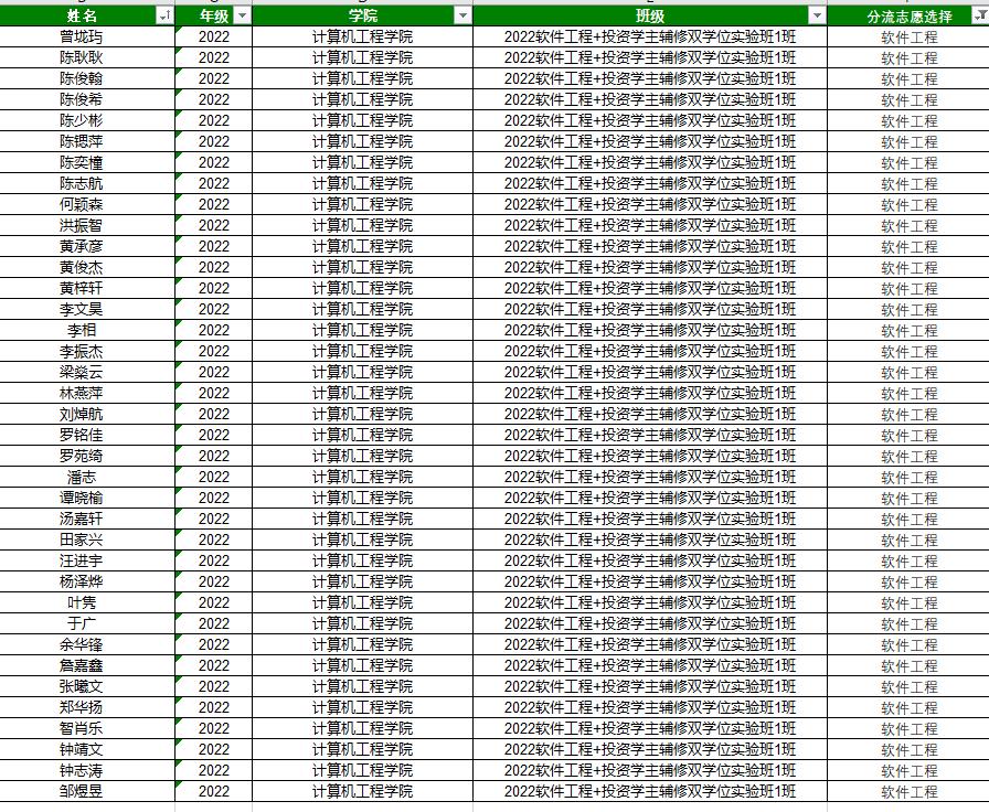 根据《广州城市理工学院主辅修双学位实验班管理办法(2023年修订)》和《广州城市理工学院计算机工程学院/国际商学院“软件工程-投资学”主辅修双学位实验班管理实施细则(试行)》的相关规定,现对37名学生选择软件工程专业作为主修专业的情况进行公示。