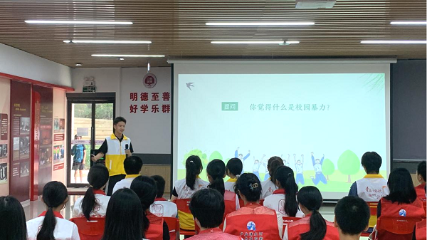 实践团成员开展防欺凌宣传教育(余晓钖 摄)