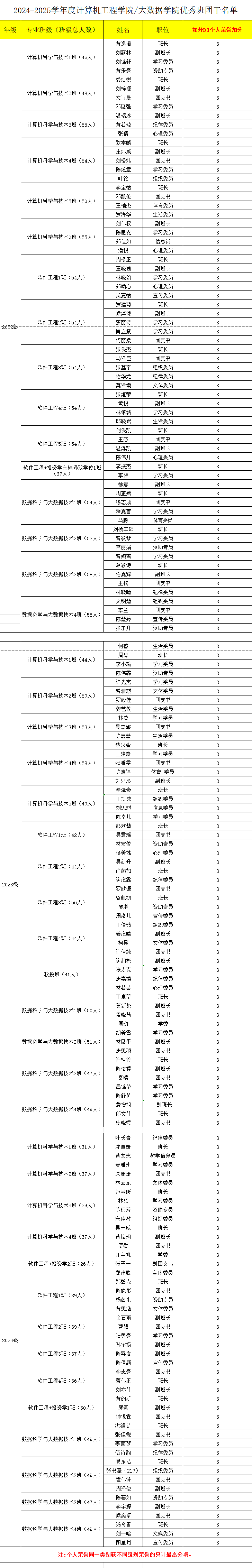 根据《广州城市理工学院计算机工程学院/大数据学院优秀班团干评选及奖励办法(2024年)》,经各班班团干个人申请、班级同学投票、班主任考核、辅导员考核,现选出计算机工程学院/大数据学院2024-2025学年度优秀班团干,结果公示如下: