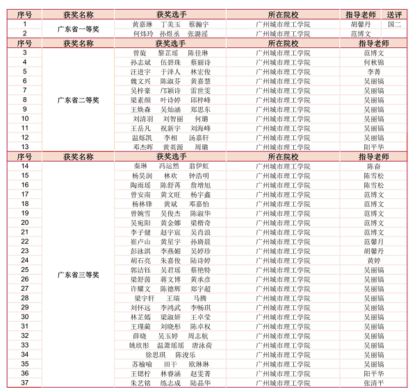 三等奖及以上获奖选手名单(陈孝均 提供)