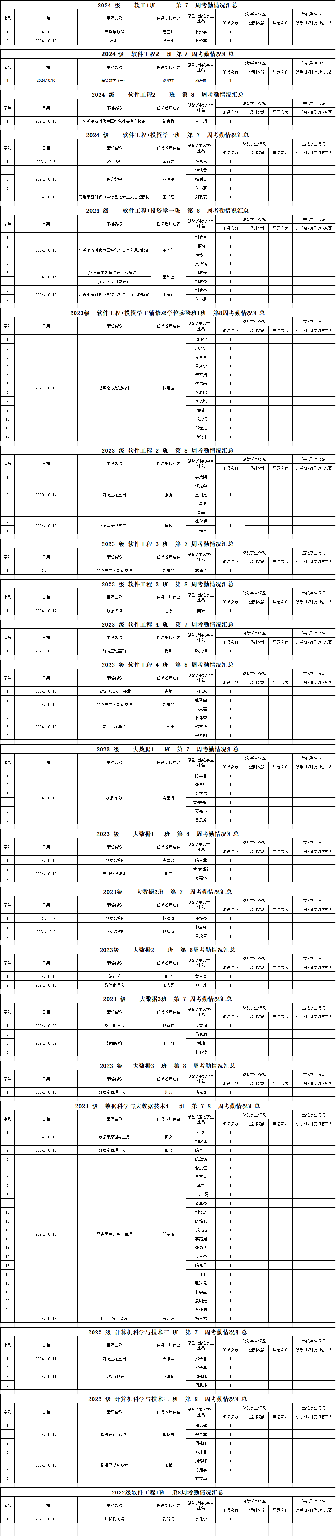 计算机工程学院/大数据学院2024-2025学年度第一学期第7-8周学生考勤情况通报