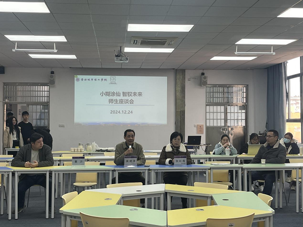 本网讯(记者 郭榆 李浩亮)为评估本学期新实施的项目式教学模式,12月24日下午,学院学生工作办公室与项目管理办公室在B5-501联合举办了“小糊涂仙 智驭未来”系列活动之师生座谈会。会议由项目管理办公室负责人主持,学院院长奚建清、党总支书记张彩霞、副院长蔡沂出席,任课教师及2022级学生代表共同参与。