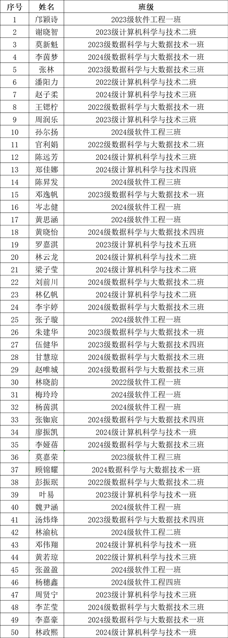 为进一步规范新团员发展程序,保障新团员发展质量,壮大团员队伍,提高团组织战斗活力,以《中国共产主义青年团发展团员工作细则》为指导,以公平、公开、公正为原则,结合我院实际情况,经个人申请,团组织推荐,入团考试,学院审核,拟定邝颖诗等50人(见下表)成为2025年入团积极分子,现予以公示。