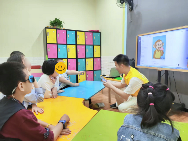 本网讯(记者 樊一眉 陈子皓)3月21日至4月18日,学院2024级计算机科学与技术1班团支部组织志愿者团队,走进花都区星语特殊儿童教育机构,开展“科技+”公益活动。活动以“常规服务+专业创新”双模式推进,通过音乐、美术、感统训练等传统帮扶项目,结合人工智能技术体验课程,为特殊儿童提供多元化成长支持。