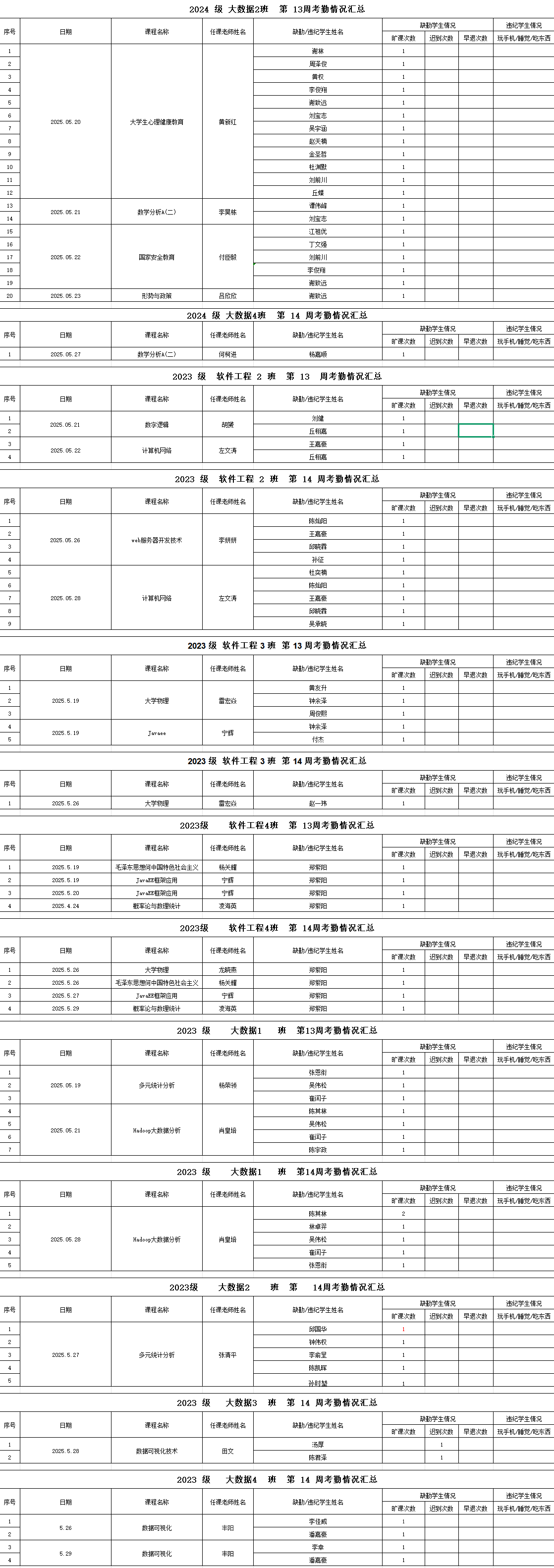 计算机工程学院/大数据学院2024-2025学年度第二学期第13-14周学生考勤情况通报