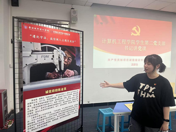 学院学生第二党支部书记温家怡上党课(陈雪松 提供)