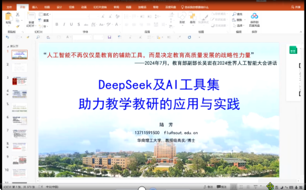 陆芳教授的《DeepSeek+AI工具集助力教学的方法与实践》系列讲座也取得显著成效。她深入介绍多种AI工具及其在教育中的应用,并通过具体案例,展示AI如何帮助教师简化教学任务,提升课堂效果,并分析AI工具如何在教学设计、教材制作和课堂互动中发挥巨大作用,使教师能够更高效地进行课堂管理与教学。讲座中,陆芳还通过实操演练环节,让教师们亲自体验多种AI工具的使用,帮助他们快速掌握各种AI工具的应用技巧。