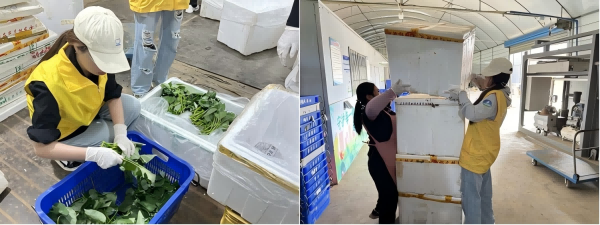 实践团成员参与冷链分拣工作(陶雨瑶 摄)