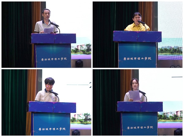 奚建清院长、何秋锦老师、刘梓源同学及饶佳佳同学讲话(学院团委宣传部 摄)