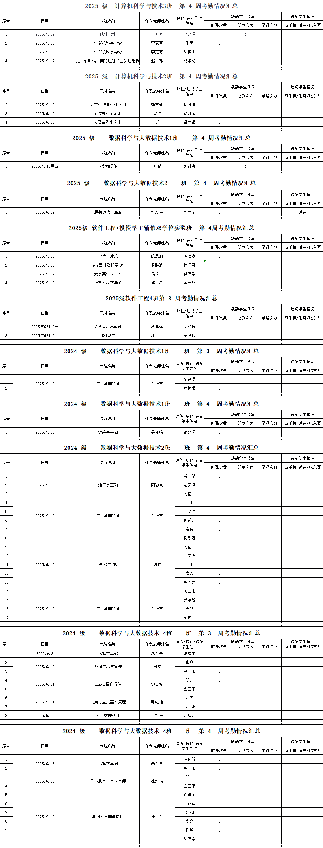 计算机工程学院/大数据学院2025-2026学年度第一学期第3-4周学生考勤情况通报