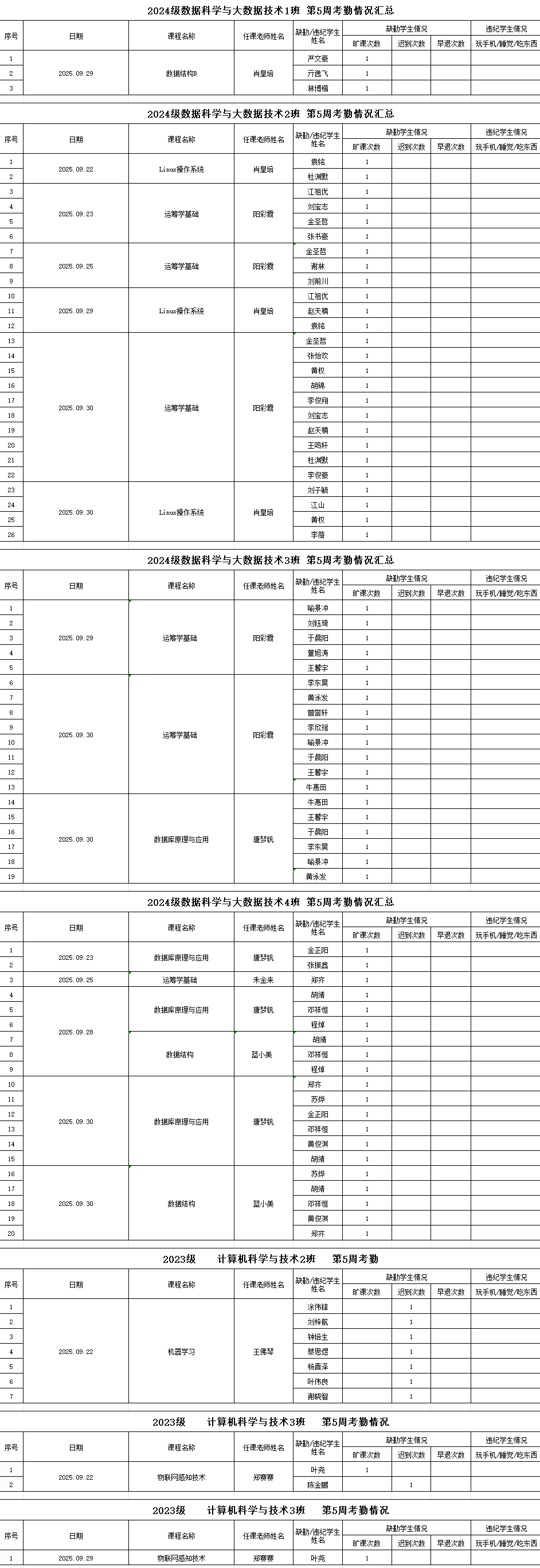计算机工程学院/大数据学院2025-2026学年度第一学期第5-6周学生考勤情况通报