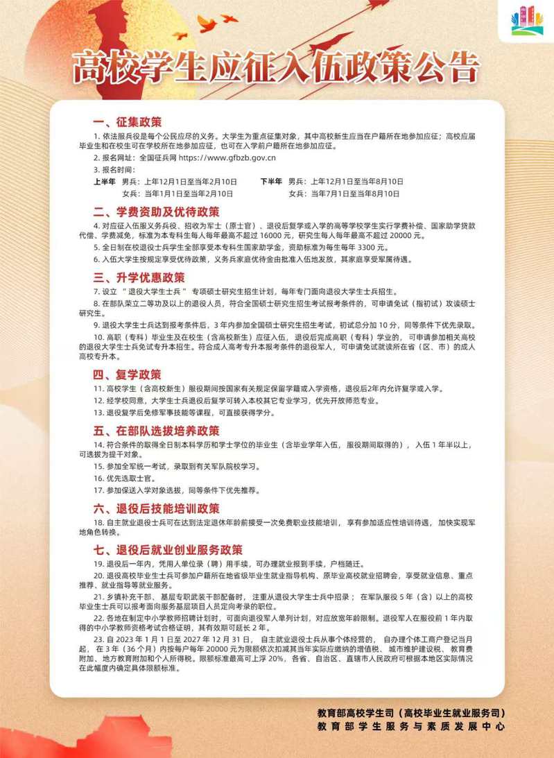 高校学生应征入伍政策公告
