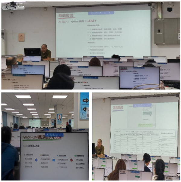 本网讯(记者 吴少玲)11月8日,由教师教学发展中心统筹,外国语学院主办、我院协办的第三期教师人工智能专项工作坊在计算机实验中心B5-203举行。本次工作坊以“Python编程+LLM的跨学科AI教学实践”为主题,吸引了60余名教师参加。培训采用“理论奠基—案例示范—实操演练”三段式模式,系统探讨了AI技术与外语课程深度融合的创新路径与教学方法。