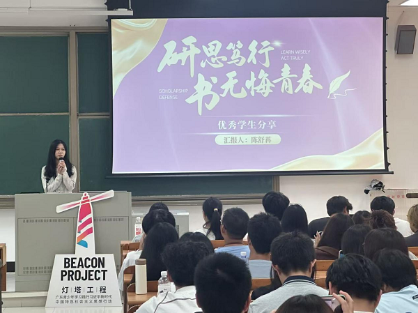优秀个人经验分享环节,作为国家奖学金获得者、多项省级以上学科竞赛奖项得主并曾担任主要学生干部,陈舒苒同学以“研思笃行,书无悔青春”为主题,全面分享了她的心路历程。她从目标与时间管理切入,阐述了如何高效规划学业。陈舒苒通过具体竞赛案例,分享了如何将理论知识转化为创新实践能力。最后,她结合学生工作经历,探讨了如何平衡学习与社会活动,实现综合素质的全面提升。陈舒苒同学的分享全面而深入,为同学们提供了一个立体、可借鉴的优秀榜样,现场同学纷纷表示收获颇丰。