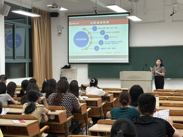 9月23日,在A4-310举办的考公讲座,由具备丰富考公指导经验与行业洞察的黄月娇老师担任主讲人,为同学们倾囊分享考公实用经验与专业见解。讲座中,黄月娇老师以公务员就业岗位科普为切入点,结合最新公务员招录政策与行业发展趋势,详细梳理了不同系统、不同层级公务员岗位的分类标准与核心职能,清晰剖析了各类岗位在工作内容、职业发展路径、报考条件等方面的具体区别。针对同学们普遍关注的岗位选择难题,黄月娇老师进一步给出了极具针对性的建议,从个人专业匹配度、职业发展规划、地域偏好、竞争难度等多个维度,指导大家如何结合自身实际精准筛选岗位,规避报考误区,提高上岸概率。