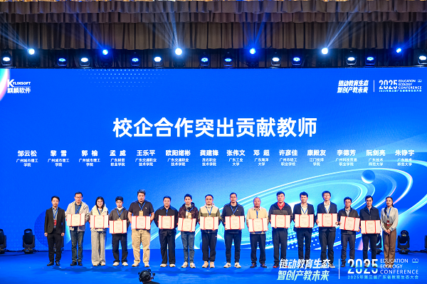 此外,我校获得麒麟软件颁发的“优秀生态合作基地”荣誉,信创实验室负责人邹云松老师、黎雪老师和郭榆老师被授予广东区域“校企合作突出贡献老师”。