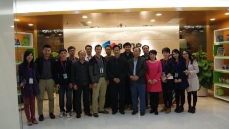 本网讯 为了解我校往届毕业生的工作情况,进一步加强校企合作,1月6日下午,计算机工程学院院长李仲麟、副院长岑有文,副院长邓春晖等一行8人,赴广州市久邦数码科技有限公司(3G门户)参观交流。公司首席运营官特别助理张帆、人力资源部总监苏永谦热情接待。