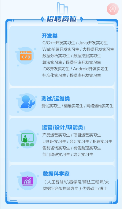 4、实习津贴:(2500-4500元)/月,上海、杭州、西宁可提供住宿。