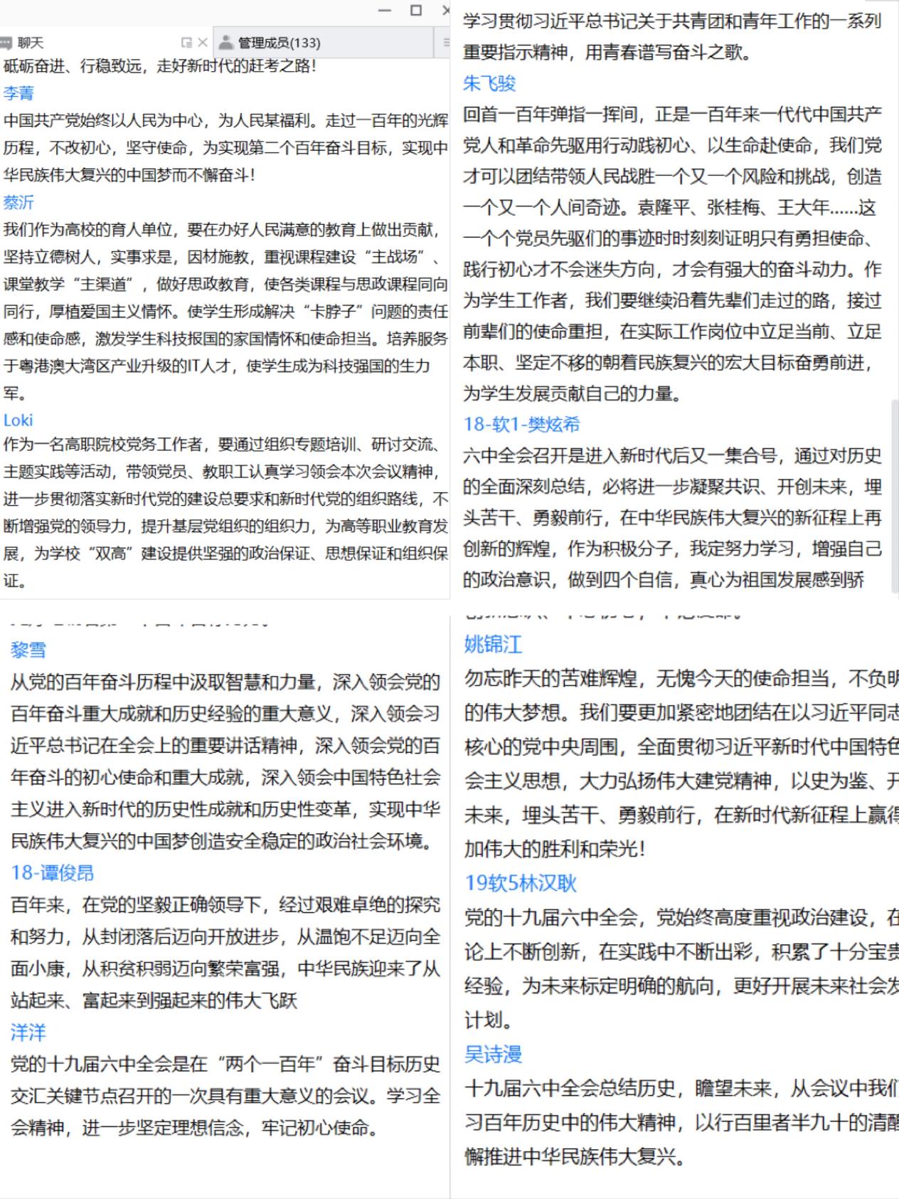 为了准确把握和深入领会和十九届六中全会精神实质和深刻内涵,把全会精神落到实处,11月24日晚上,我院党总支书记罗军通过线上的形式,围绕十九届六中全会审议通过的决议和公报召开党组理论中心组扩大会议专题学习会,学院党政领导,各部门主任、副主任,党总支委员、各支部书记、副书记、支部委员,全体师生党员共计133人参与了此次学习会议。