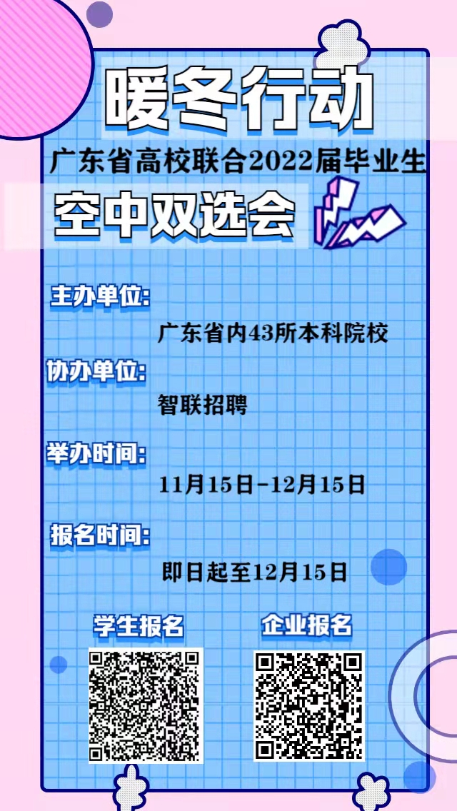广东省高校联合2022届毕业生“暖冬行动”空中双选会启动啦!!