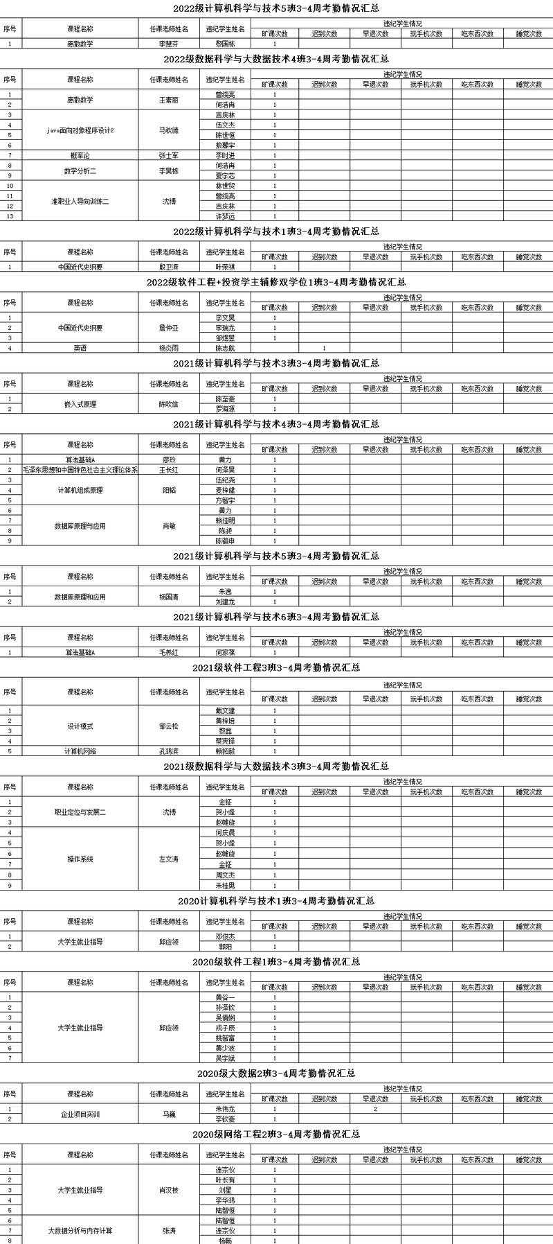 计算机工程学院/大数据学院2022-2023学年度第二学期3-4周考勤情况通报